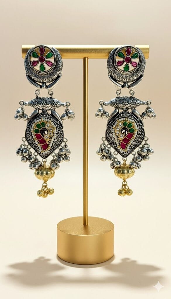 Meher Pacchi Kundan Peacock Dangler Earrings