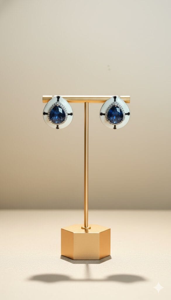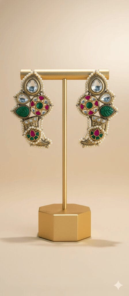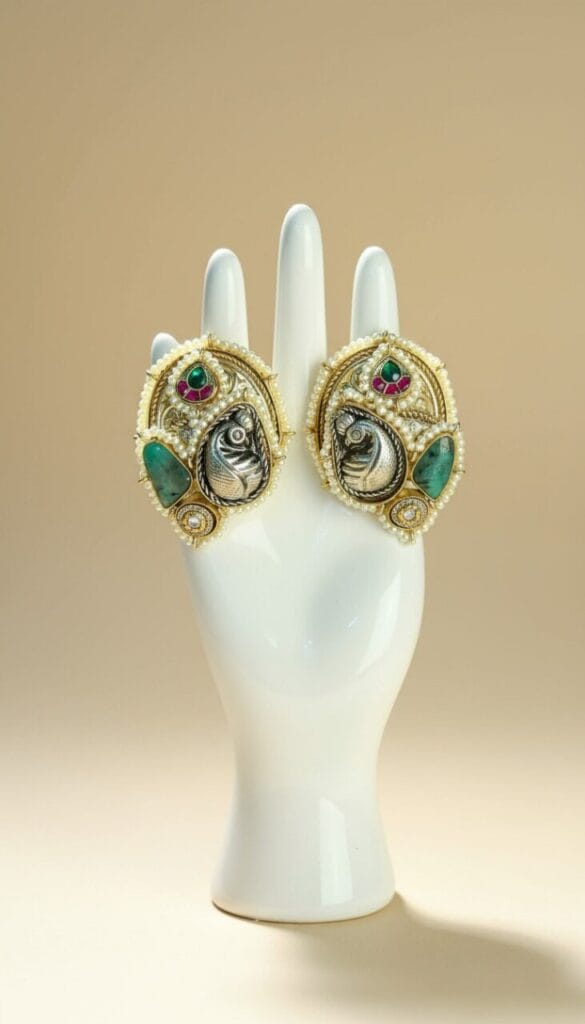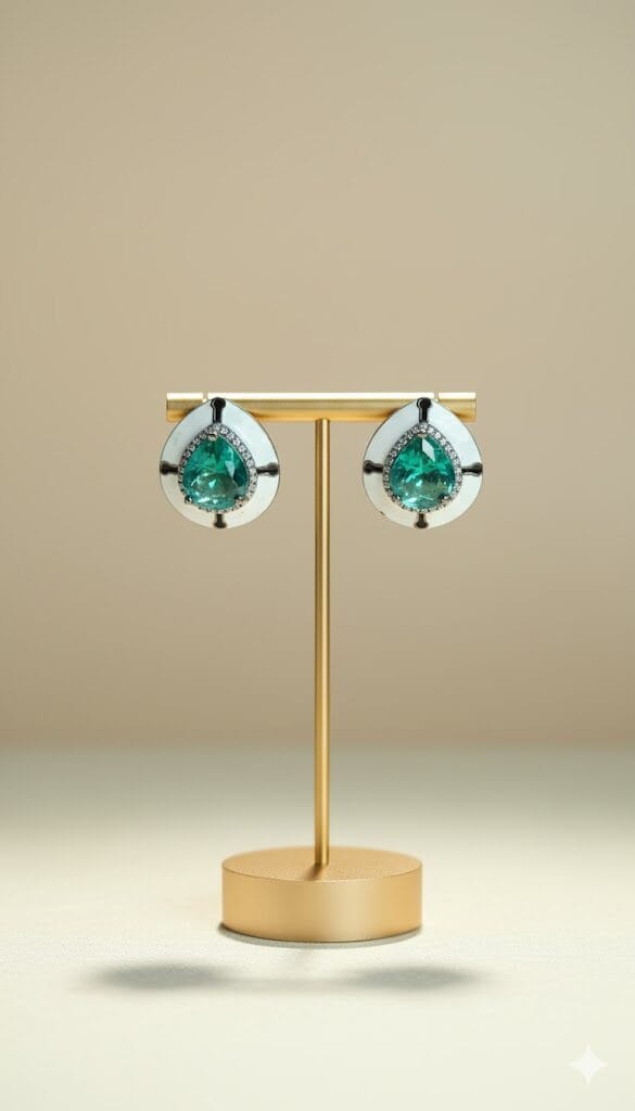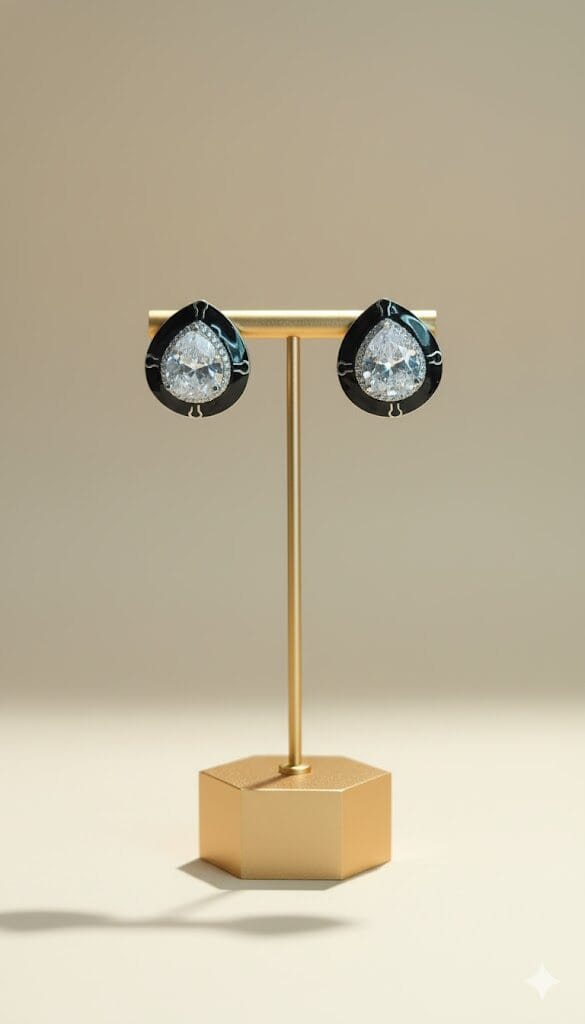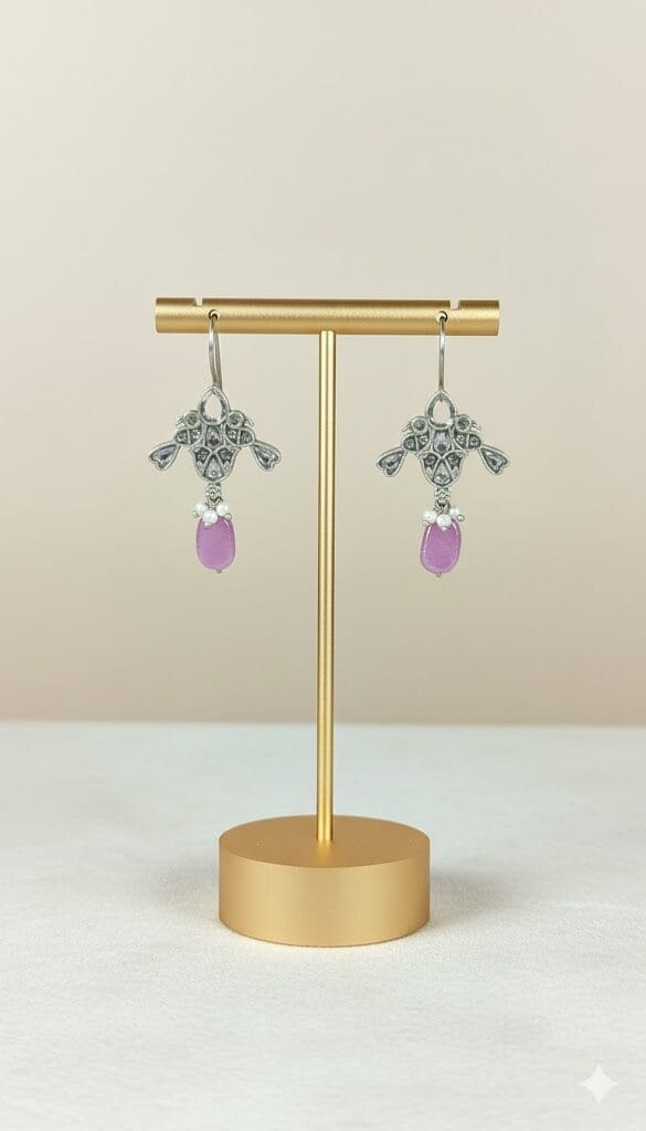 Silver-Tone Stud Earrings with Carved Beige Stone