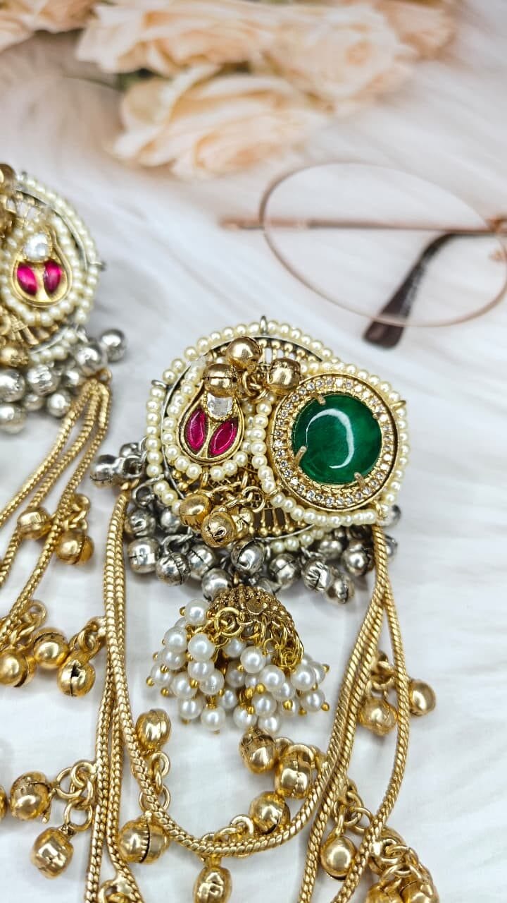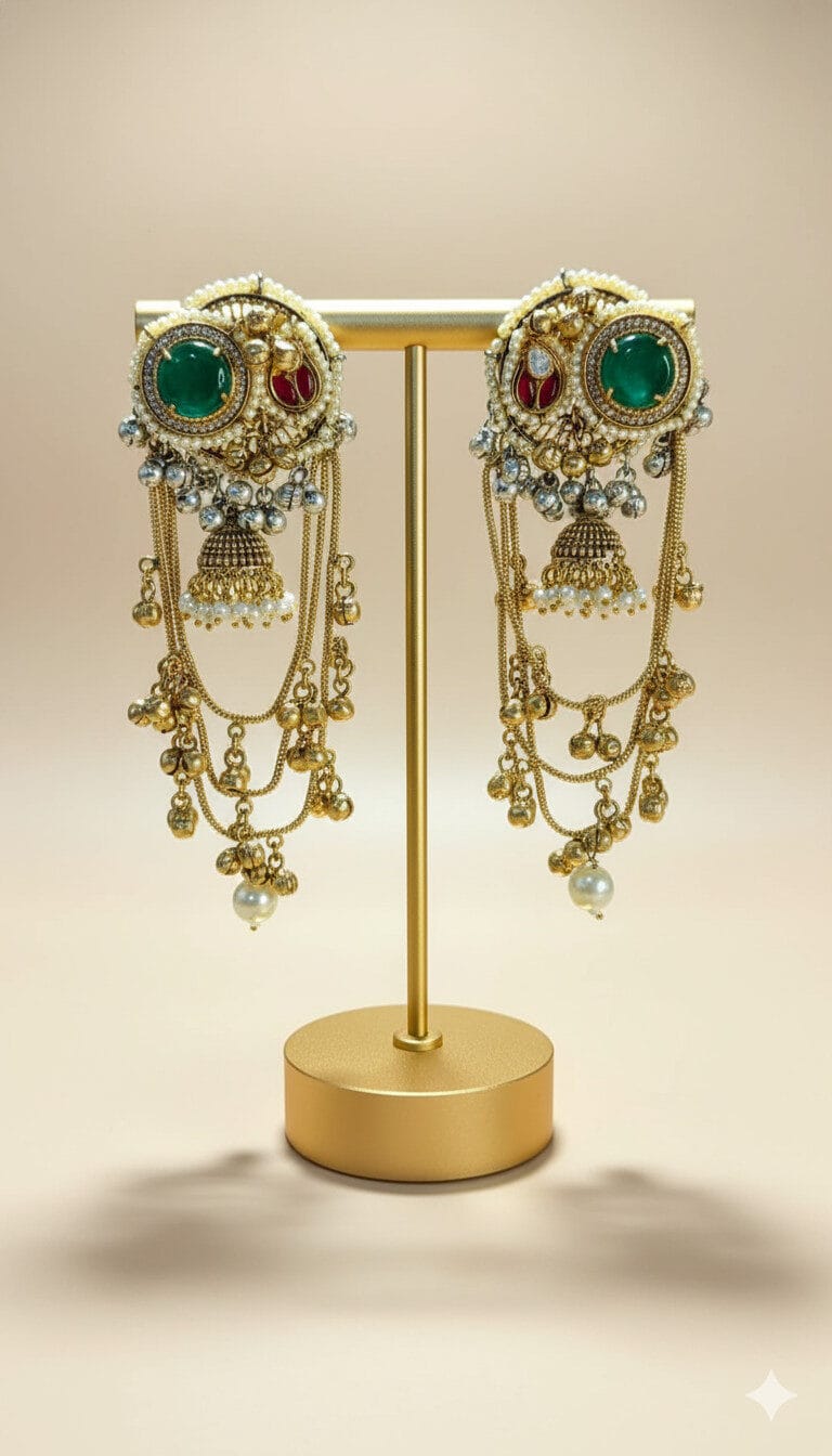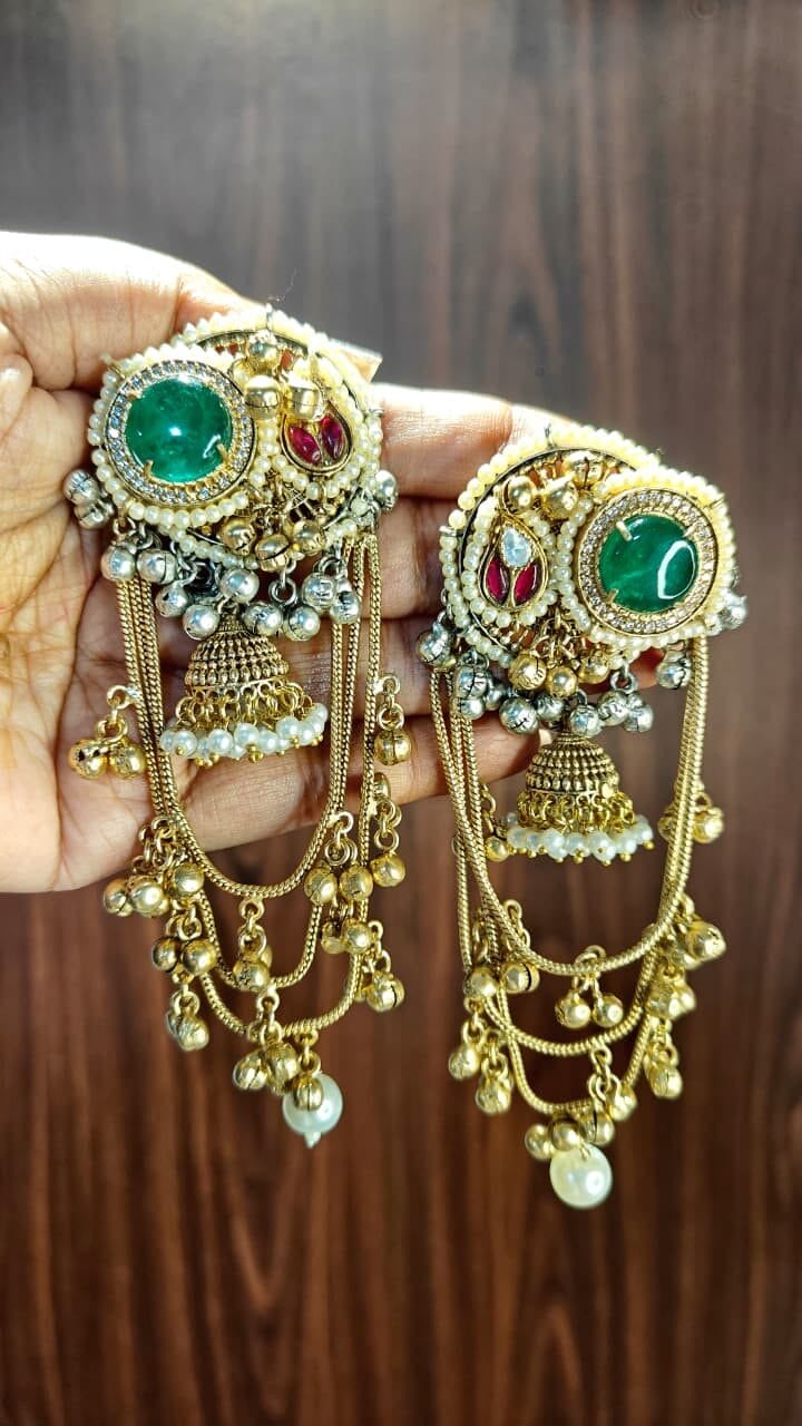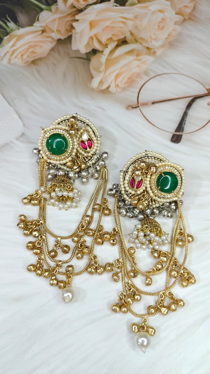 Design Type: Traditional Kaan Phool-style earrings with jhumka and chain detailing