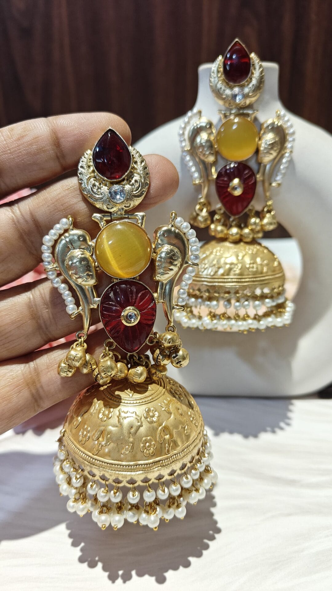 Perfect for festive occasions, weddings, or adding a regal touch to your everyday ethnic wear, the Chaand Jhumka pairs beautifully with sarees, lehengas, and Anarkalis. Made with premium materials and a high-polish finish, it’s more than just an accessory — it’s a statement of your inner radiance.