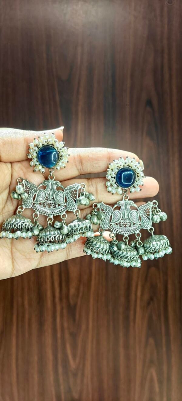 Adorned with a deep royal blue stone surrounded by lustrous pearls