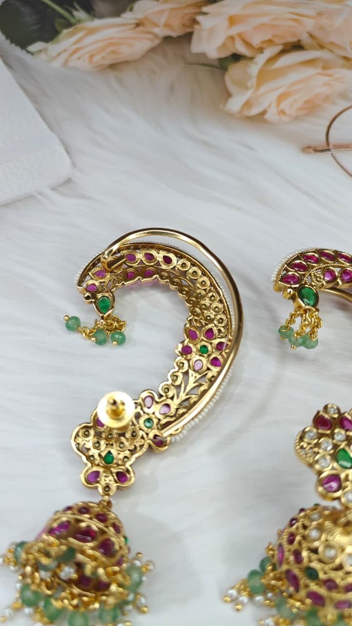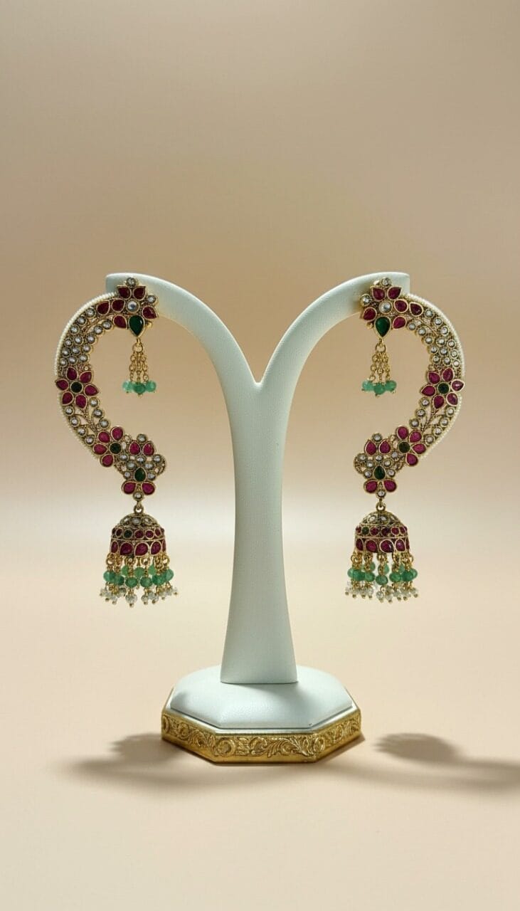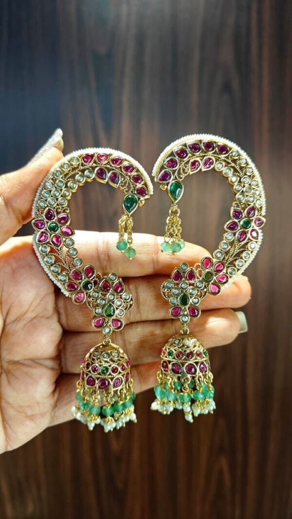 • Stonework: Kundan & coloured glass stones with pearl edging