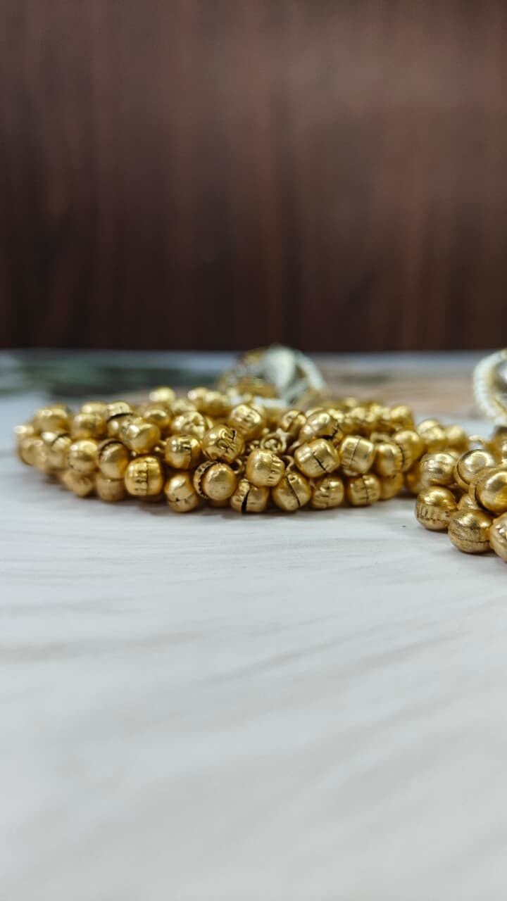 Material: Gold-plated brass, silver polish, kundan, and pearls.