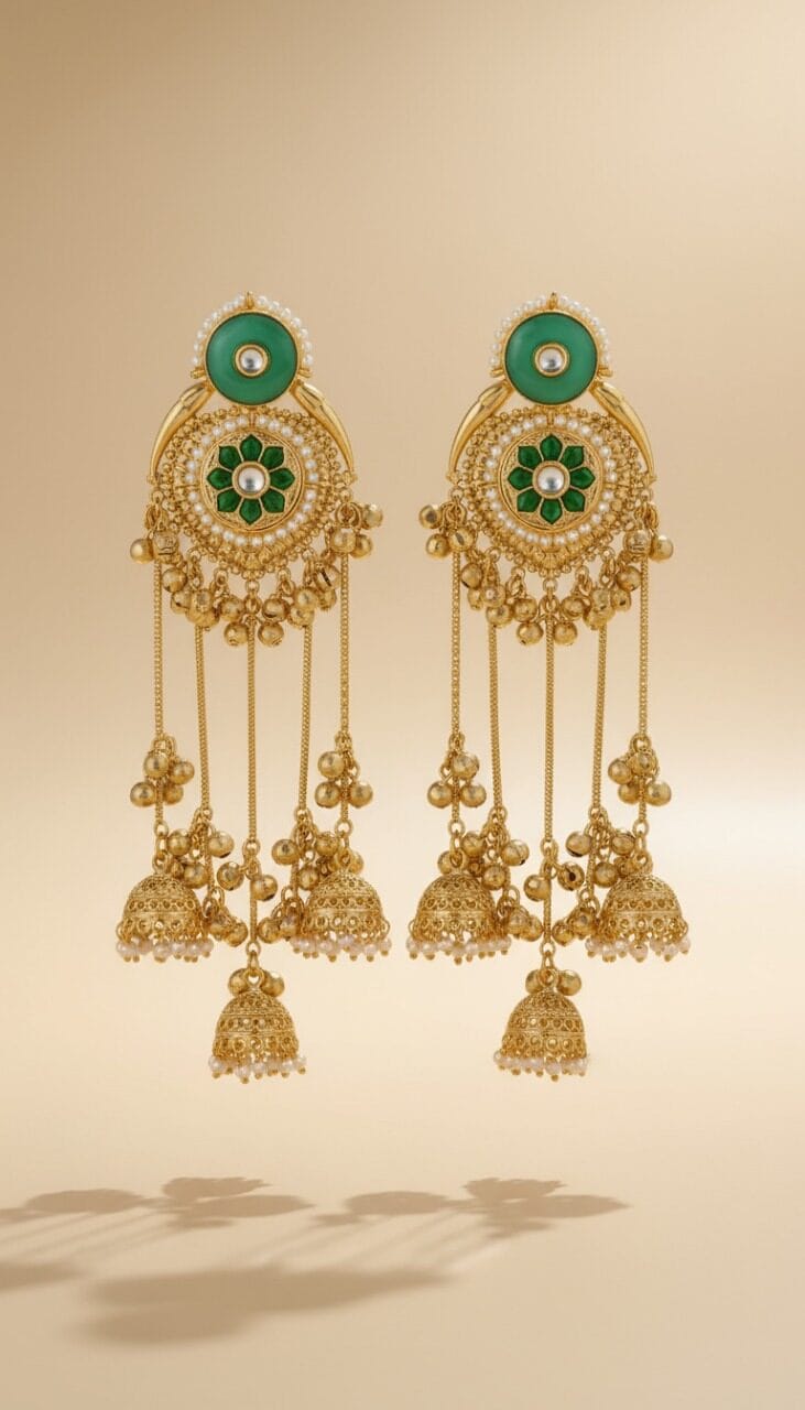 Accents: Layered craftsmanship blending Kundan, Meenakari, and pearl artistry