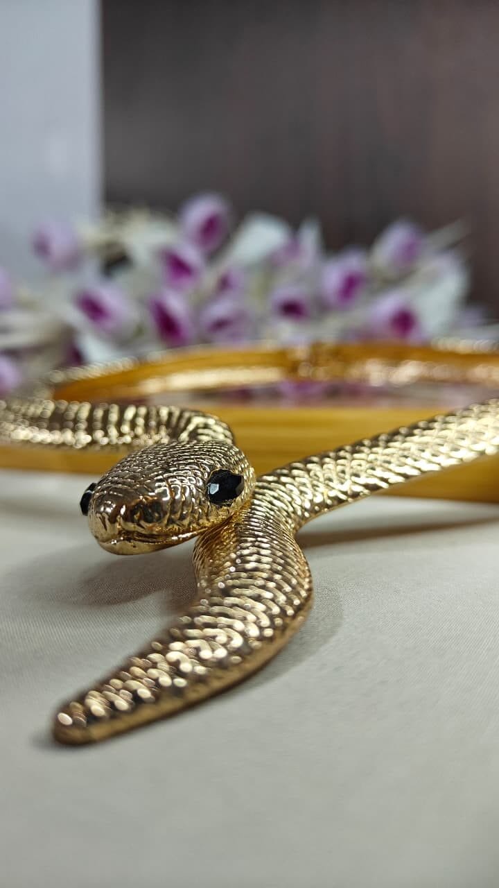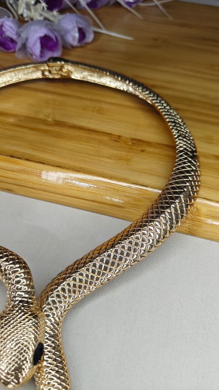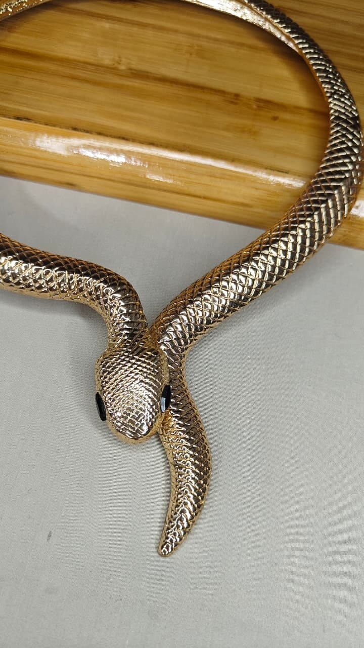 A striking serpent-inspired necklace designed with intricate scale detailing and bold craftsmanship. The snake motif, symbolizing power, protection, and mysticism in Indian heritage, makes this piece a true statement of elegance and strength.