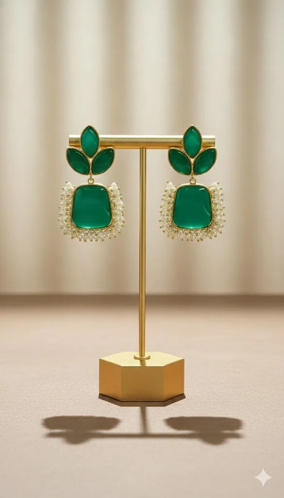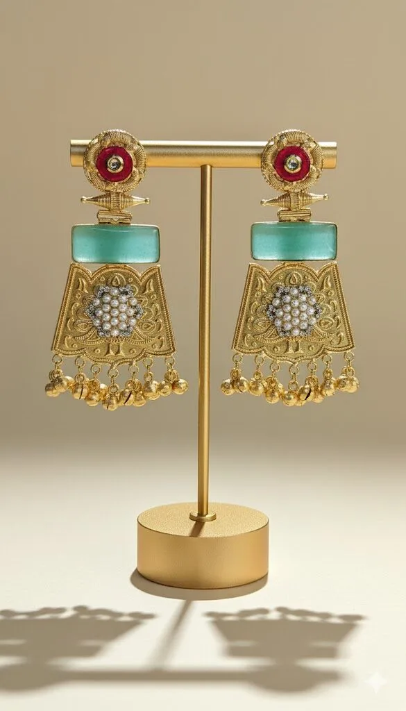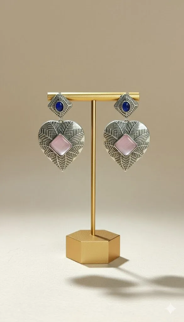 Sufi Kashmiri Earrings with a soft pink stone, antique silver detailing, and elegant long danglers, bringing a graceful charm to any outfit.