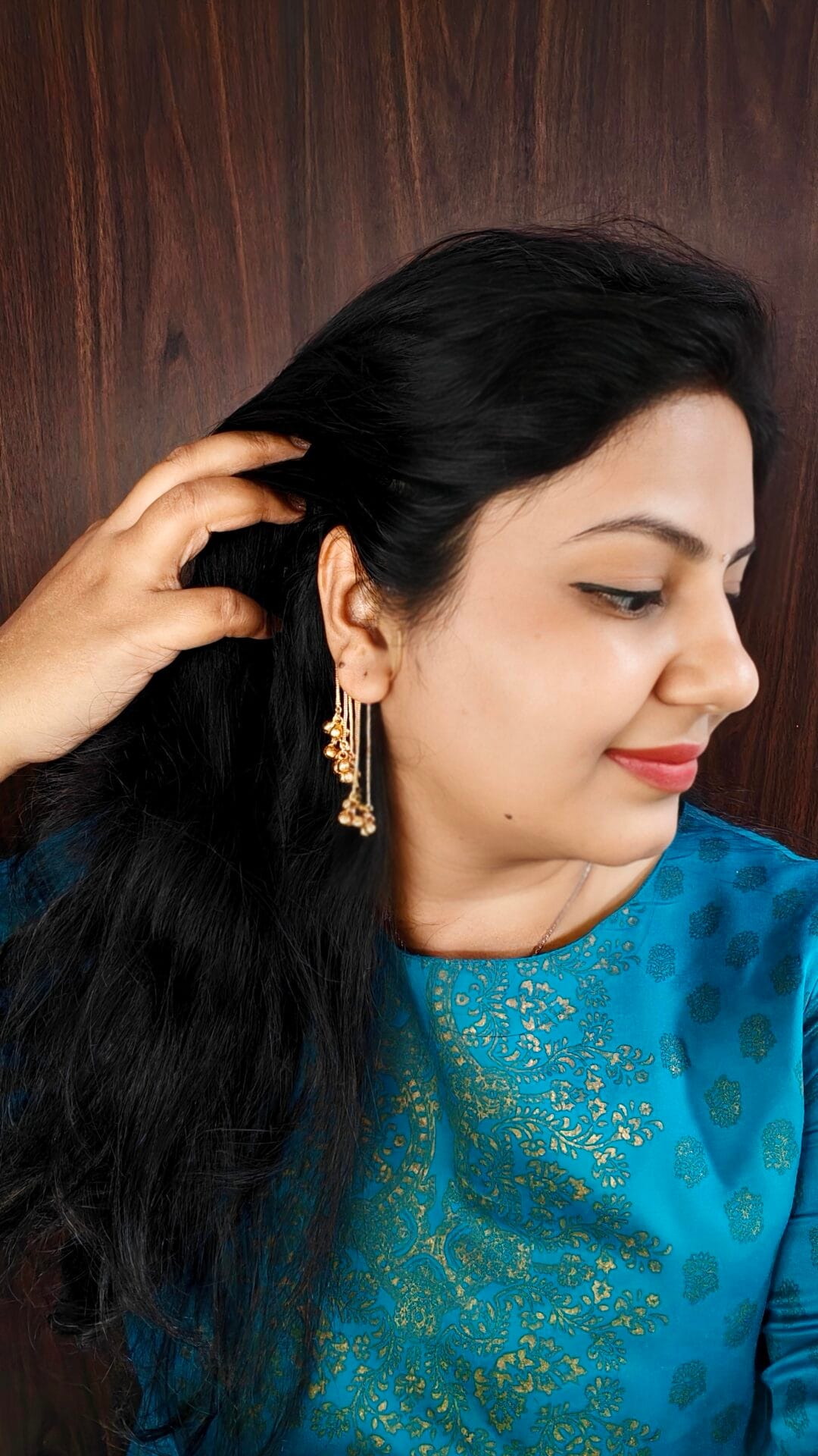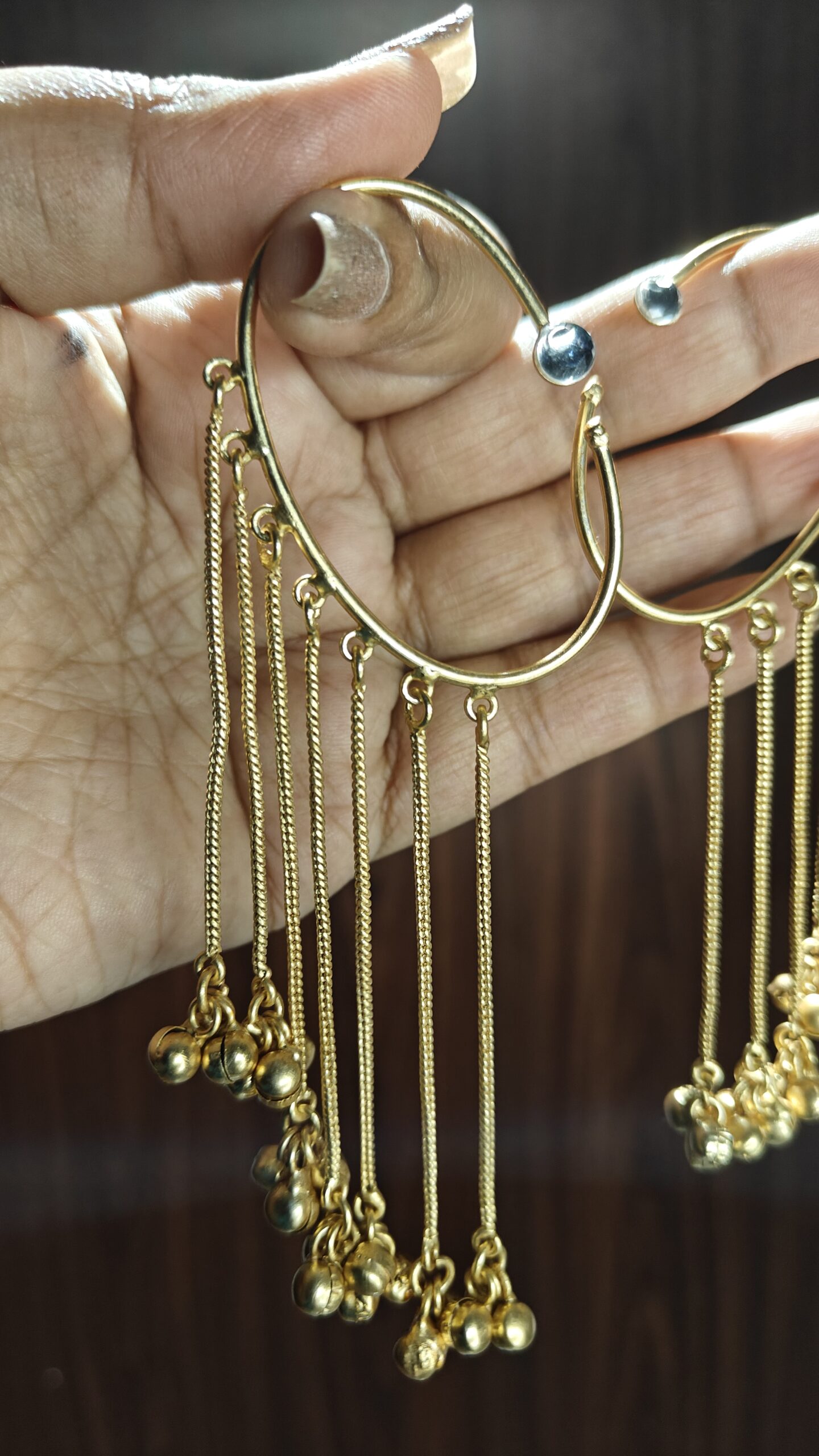 Description: Chic gold-toned earcuffs with delicate chain drops and tiny ghungroo charms — a perfect fusion of minimalism and tradition.